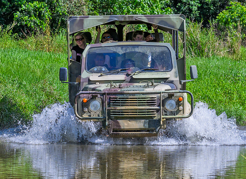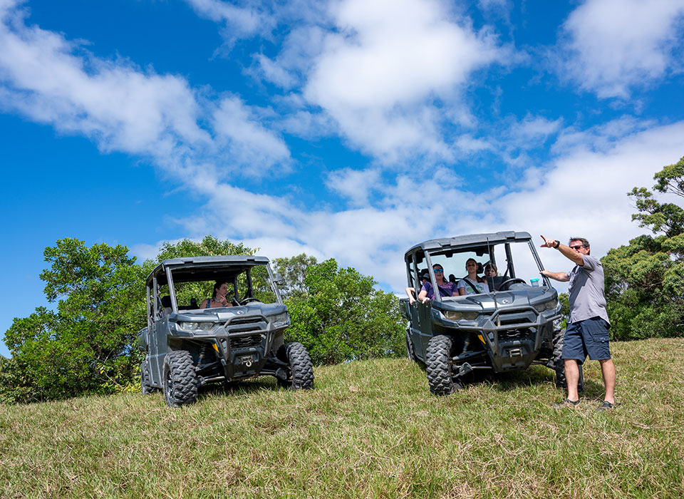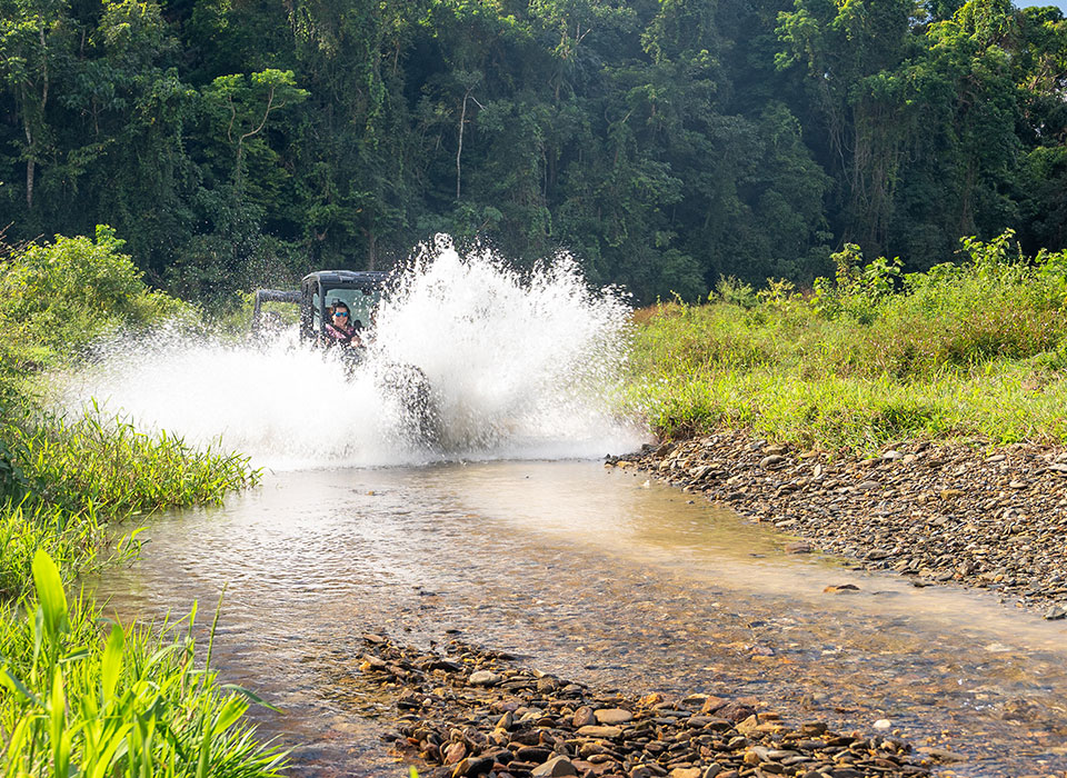 Cassowary Falls’ exclusive Waterfall and Daintree Rainforest adventure tour includes an all action UTV (4WD) ride, during which your experienced driver / guide will splash across creeks and rivers – dress to get wet! – and drive up hills providing amazing Daintree views. It’s fully guided by passionate locals who provide talks on the rainforest. Our 2.5 hour small group tour also includes an Army Truck rainforest ride, Bush Tucker and farm fruit tasting (seasonal) and of course, swimming and time at the magnificent Cassowary Falls.