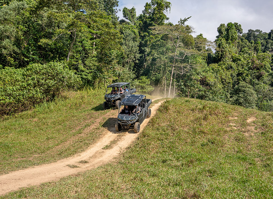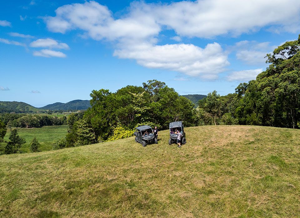 Cassowary Falls is on a magnificent private property in the Daintree Valley. On this component of the Daintree Waters tour you’ll go off-road into a Jurassic type landscape and feel dwarfed by the mountains and valleys that surround you. It includes an all-action ride in a Utility Terrain Vehicle (UTV), where your experienced guide splashes across creeks and rivers (dress to get wet!) with jaw dropping views, while sharing their knowledge of this ancient forest with you, as well as seasonal Bush Tucker and farm fruit tasting. The centrepiece experience is swimming at the stunning Cassowary Falls with freshwater turtles and river perch. Cassowary Falls is the place to refresh, revive and relax. Bring your towels, bring your smiles, you are in for an amazing adventure.